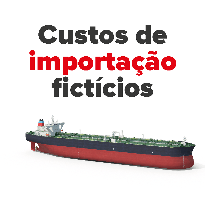 A Petrobrás produz em território brasileiro cerca de 80% dos combustíveis consumidos no país, mas nós pagamos como se eles fossem importados. Pagamos em dólar e até uma tarifa portuária e de transporte que não existe. Isso tudo mesmo com as refinarias operando em torno de 30% abaixo de sua capacidade de produção e com várias obras de refinarias paradas.