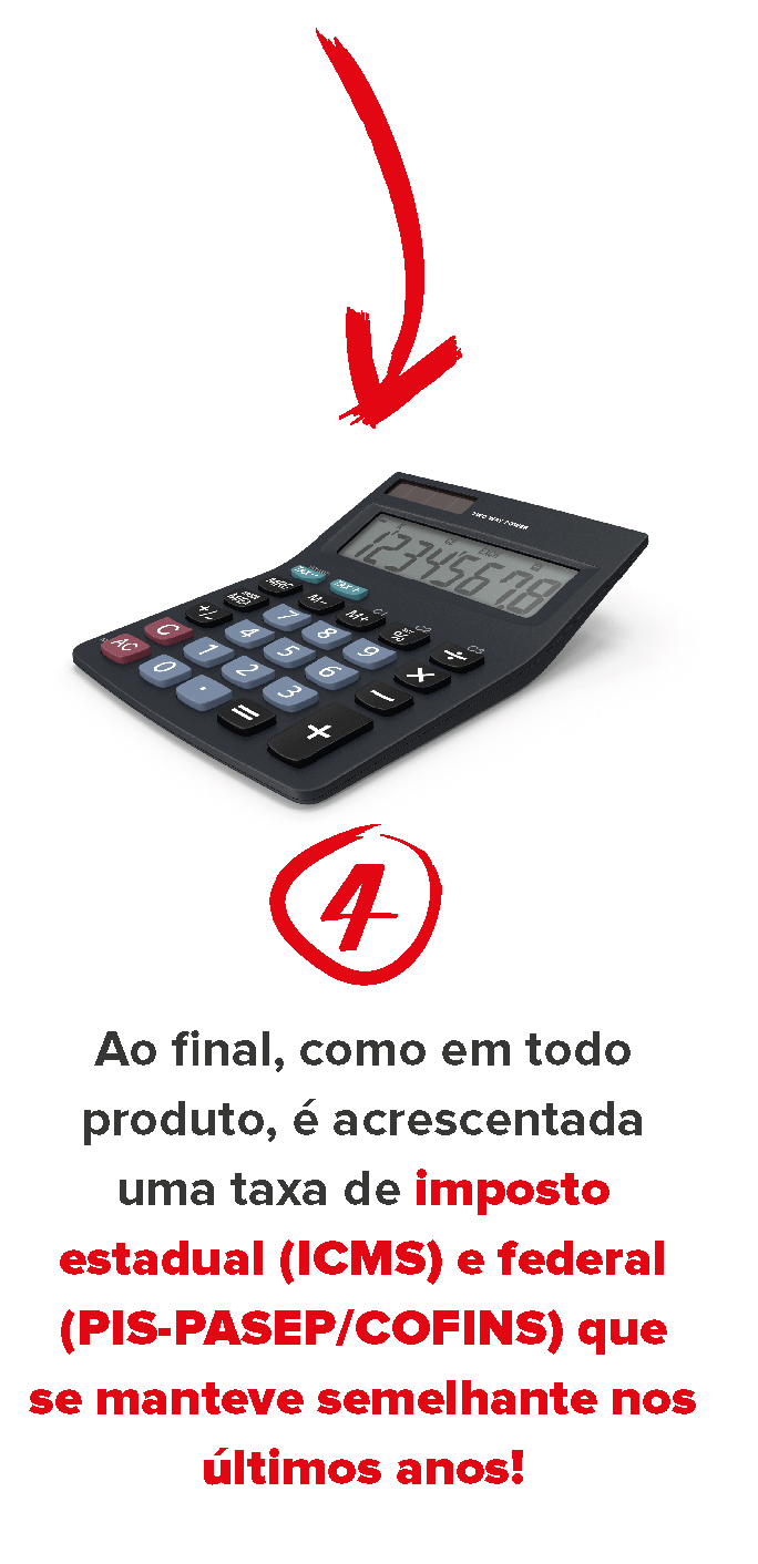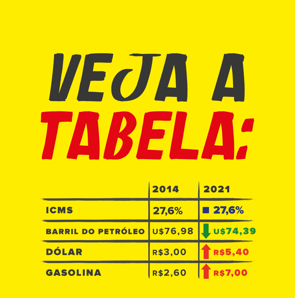 Muitos pensam que o culpado pelo aumento dos combustíveis é o alto imposto. Entretanto, a média nacional do ICMS é a mesma desde 2014: 27,6%. O que mudou de 2014 pra cá foi a política de preços da Petrobrás.